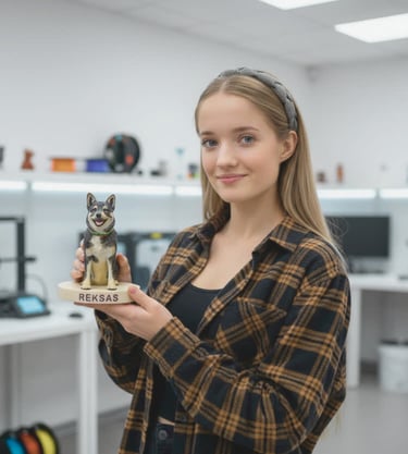 2022 metais, kai 3D spausdinimas Lietuvoje dar nebuvo plačiai paplitęs, pradėjome juo domėtis ir patys eksperimentuoti. Iš pradžių savo gaminius - įvairias vazas ir kitus produktus - pardavinėjome „Etsy“ platformoje. Pardavimams augant, pradėjome ieškoti naujų idėjų ir krypčių, ką dar galėtume sukurti. Tuomet gimė mintis kurti personalizuotus gaminius - žaislus iš vaikų piešinių, unikalius gyvūnų pakabukus, statulėles pagal augintinių nuotraukas ir įvairias dovanas - kaip būdą įamžinti svarbius gyvenimo momentus ir brangius ryšius. Ilgainiui ši idėja virto verslu - atidarėme savo internetinę parduotuvę. Kiekvieną kartą, matydama vaikų nuostabą, kai jų piešiniai virsta tikrais žaislais, ar klientų emocijas, kai jie rankose laiko savo mylimo gyvūno atvaizdu sukurtą pakabuką, suprantu - kuriame ne tik daiktus, bet ir prisiminimus, kurie liks ilgam ❤︎.